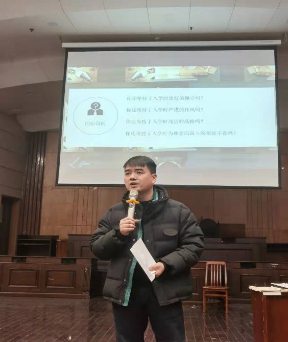 大会伊始,郭老师首先提到12月26日是个特殊的日子,这一天不仅是2022年考研学子考试结束日,也是毛泽东同志的128周年诞辰。郭老师在这个特殊的日子里也对21级学子分享自己心得体会,希望同学们不管日后是否考研,都要认真对待自身学业,不盲目内卷,同时要传承红色精神,争做新时代新青年。随后郭老师分享了自己对平安夜圣诞节的看法和体会:中国平安喜乐的背后是无数“逆行者”的奔赴,带来幸福的不是“圣诞老人”,而是无数个为你负重前行的人。