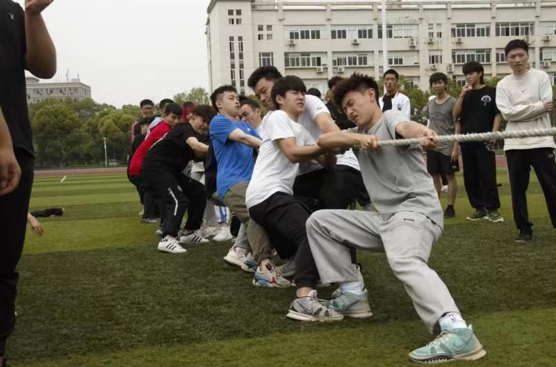 拔河比赛推高潮,团结一心手并手。在足球场的中心,有不遗余力的参赛者,还有呐喊助威的观赛者。“积力之所举,则无不胜也”,在第一回合,1班和4班僵持许久,但没有一个人轻言放弃。同学们紧攥绳子,双脚用力蹬地,身体向后倾斜,精神抖擞,势不可当。经过几轮艰难的比拼,4班战无不胜、拔得头筹。众人拾柴火焰高,赛场上,同学们以拼搏之姿谱写了一曲团结之歌;未来生活中,同学们将踵事增华,众志成城汇强力。
