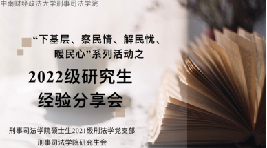 新闻网讯(学生记者李楚楚)为充分发挥党员的先锋模范作用,引导2022级研究生新生尽快了解学习环境,明晰未来规划,2022年8月10日晚19:00,我院硕士生2021级刑法学党支部联合院研究生会,于腾讯会议召开了“下基层、察民情、解民忧、暖民心”系列活动之研究生入学经验分享会。本次会议由2021级刑法学硕士研究生李家琪主讲。