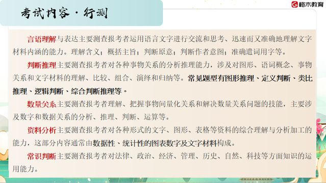 首先,汪振老师从考情介绍、报考分析、考试内容、备考建议等方面,向同学们详细介绍了近几年国考报考情况、报考的程序时间轴及各省市的岗位报名情况,重点强调了国考备考要点以及相关解题技巧,并就国考的职位选择和薪资待遇进行了相应说明。