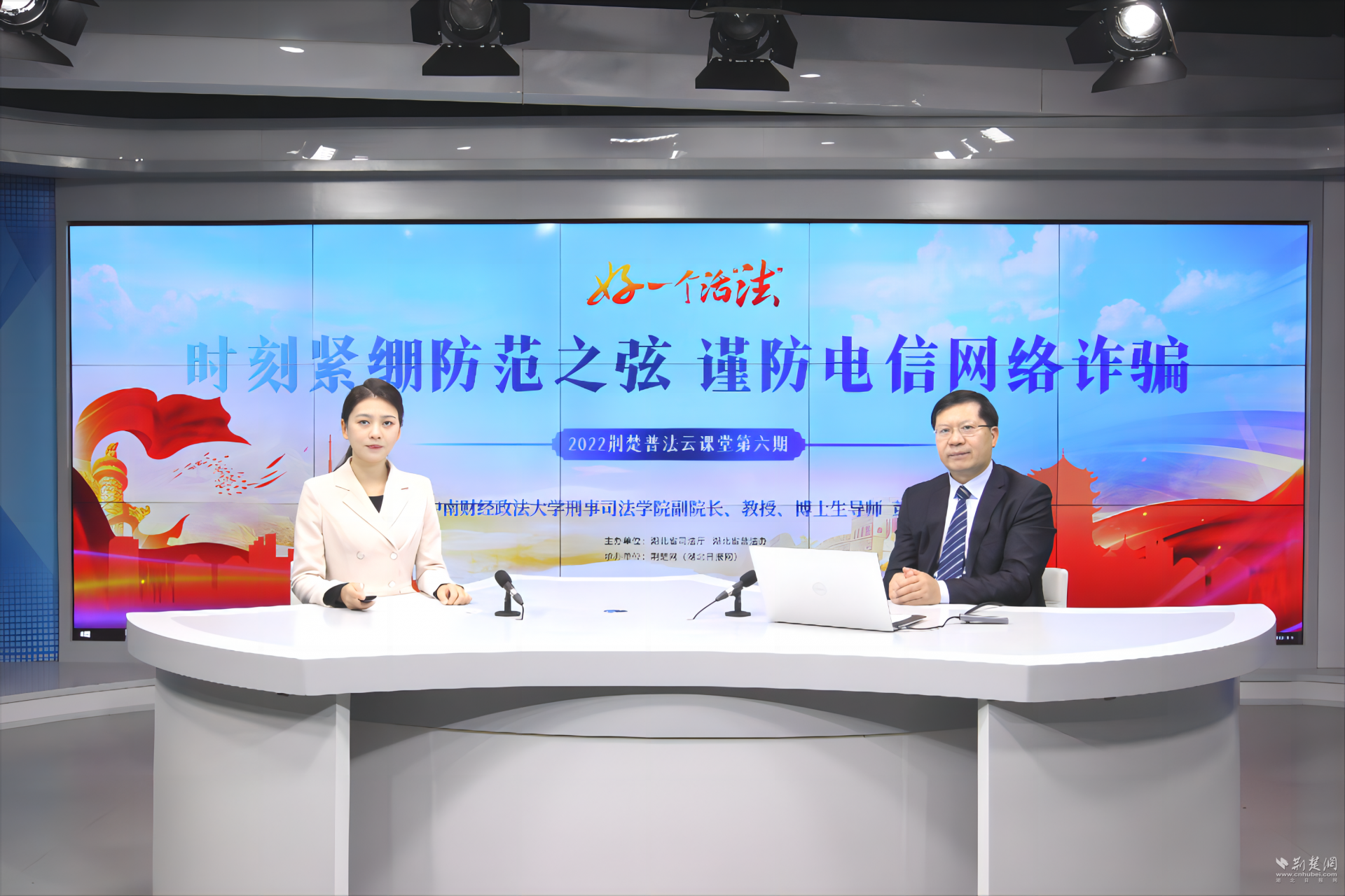 第十三届全国人大常务委员会第三十六次会议于2022年9月2日通过了《反电信网络诈骗法》,自2022年12月1日起施行。为进一步提高人民群众的识骗、防骗能力,营造“全民反诈、全民防诈”的氛围,11月22日,由湖北省司法厅、湖北省普法办主办,荆楚网(湖北日报网)承办的“好一个活’法’”——2022荆楚普法云课堂第六期直播课在湖北日报5G演播室开讲。
