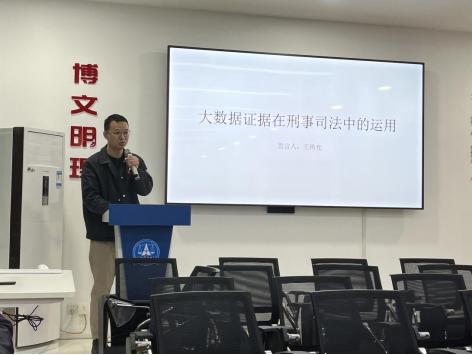 第二位演讲人是侦查学硕士王伟光,他演讲的题目是“大数据证据在刑事司法中的运用”。他首先提出了大数据证据在证据分类中的定位问题,通过对大数据证据的表现形式、内涵,对大数据证据的定位提出自己的看法,其次就大数据证据在刑事司法中的证据审查、非法证据排除进行论述。