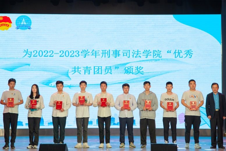(刑事司法学院院长胡向阳为“优秀共青团员”颁奖)