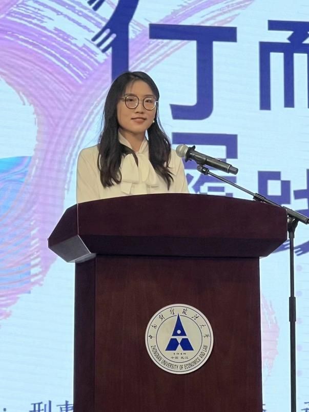 毕业生代表2020级刑法学硕士生任静分享毕业感言。她表达了对老师的感谢,回忆了自己短暂却美好、勤勉而收获的大学时光,流露着对母校的不舍与感激。最后也为学校、老师、师弟师妹们送上真挚祝福。