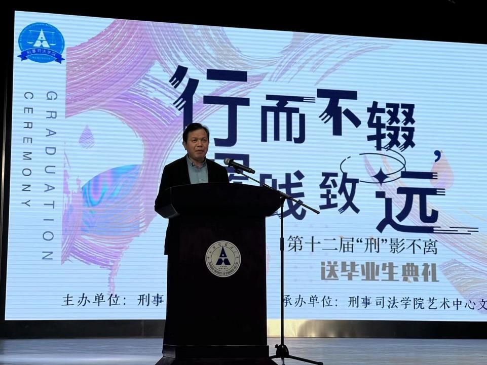 新闻网讯(学生记者 李嘉璇)5月6日晚,刑事司法学院“行而不辍,履践致远”之第十二届“刑”影不离送毕业生晚会在南湖会堂隆重举行。典礼现场欢声笑语,吹响毕业号角:流光溢彩,镌刻离别思情。刑事司法学院院长胡向阳、院党委书记张志刚、副院长董邦俊、院党委副书记万里雪、副院长郭泽强,周凌教授、2023届本科生辅导员黄文菊、2023届研究生辅导员王晓丹出席并与我院毕业生共同观看晚会。