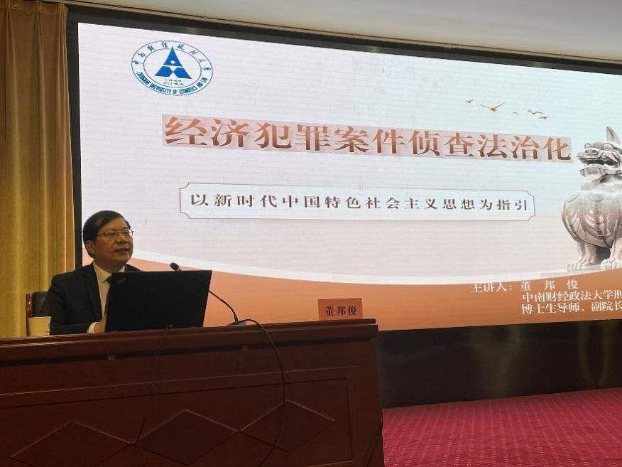 新闻网讯(通讯员 陈安超)2023年5月10日,刑事司法学院副院长董邦俊教授应湖北省公安厅经侦总队邀请为全省经侦干警讲授《习近平新时代中国特色社会主义思想指引下的经济犯罪侦查法治化》。此次讲座是湖北公安经侦为深化落实习近平新时代中国特色社会主义思想,提升经济犯罪侦查质效而开展的培训中的重要一课,由湖北省公安厅经侦总队主办,湖北警官学院承办,来自全省各地一百余名经侦干警参加。
