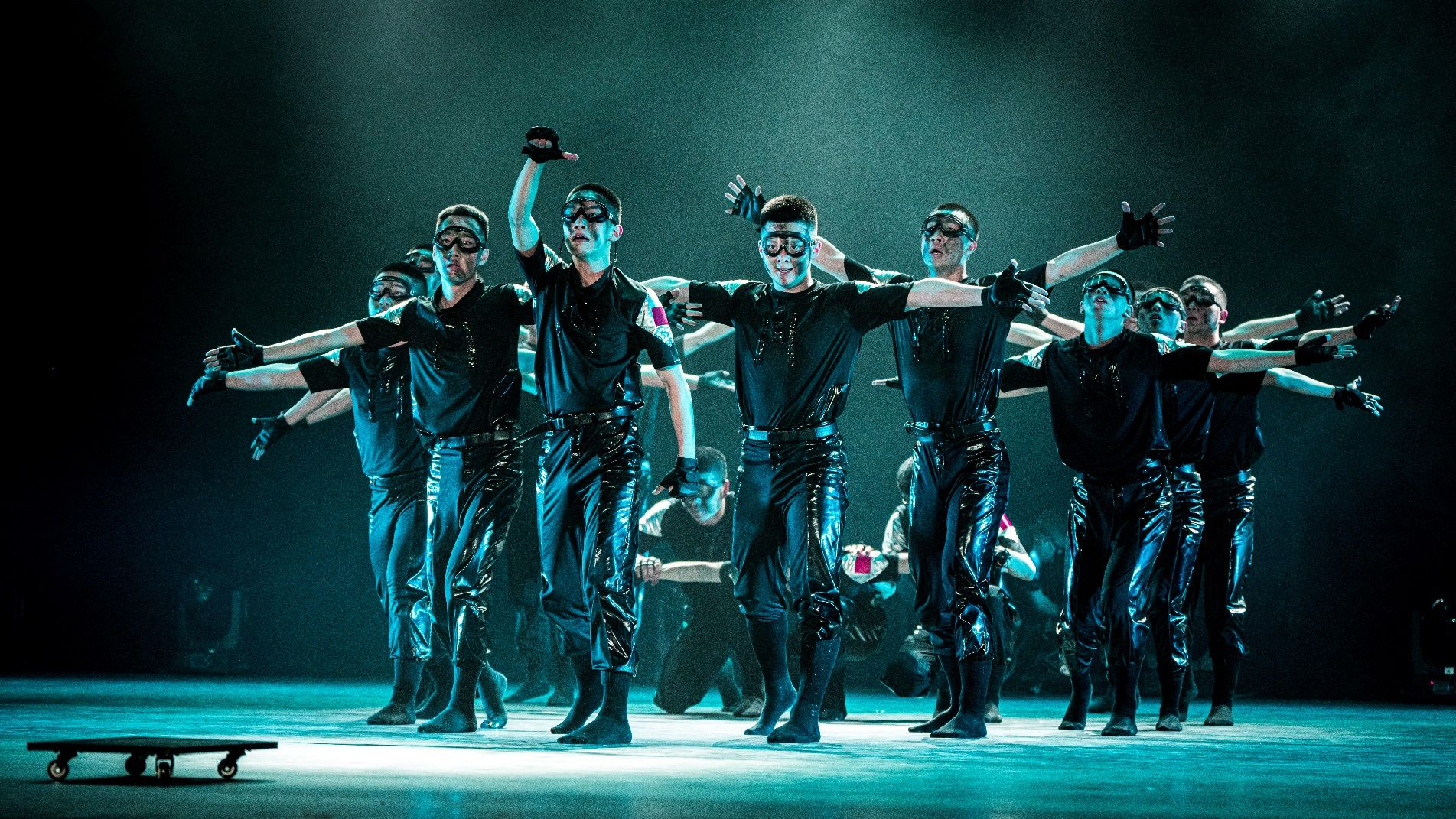 作品《蛙人》展现了我军“蛙人”特种部队在水下执行特殊任务时的风采,“蛙人”们身穿“潜水衣”,在舞台上演绎入水、翻转、游弋、下潜,试图重现“蛙人”在水下执行任务缺氧遇险仍顽强战斗的场景,情节紧张,扣人心弦,刻画了当代军人刚强勇敢的形象。