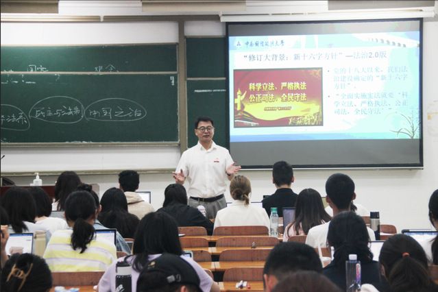 本次思政课由刑事司法学院党委委员副院长郭泽强教授主讲,参与课堂的有来自刑事司法学院和法学院的本科生党员代表和入党积极分子。郭教授首先指出,擘画宏图是为引领航向,砥砺意志必能振奋精神。党的二十大报告站位高远、主题鲜明、气势恢宏、是统筹民族复兴和百年变局的纲领性文件,具有划时代的里程碑意义,并首次用专章部署全面依法治国工作,充分体现了以习近平同志为核心的党中央对党和国家事业发展的深远战略考虑。