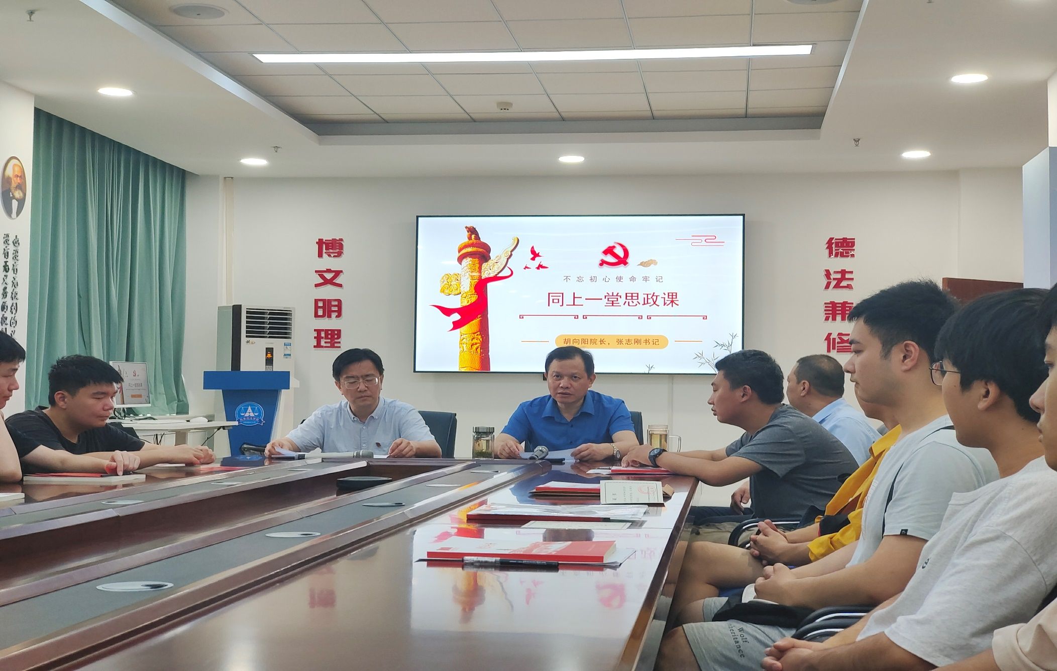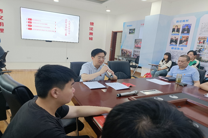 (通讯员 张瀚文)为推进学习贯彻习近平新时代中国特色社会主义思想主题教育走深走实,号召全院党员学思想、强党性、重实践、建新功,刑事司法学院积极响应学校“同上一门思政课”活动的号召。6月9日上午在文治楼二楼会议室开展了“同上一门思政课”教育活动,刑事司法学院院长胡向阳、党委书记张志刚讲授了一堂精彩生动的思政课,学院全体本科生党员以及院党委副书记万里雪参与学习。