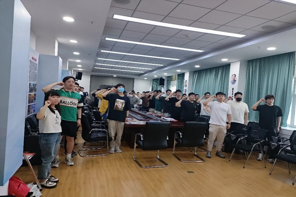 首先,全体党员面向党旗,举起右拳,重温入党誓词。