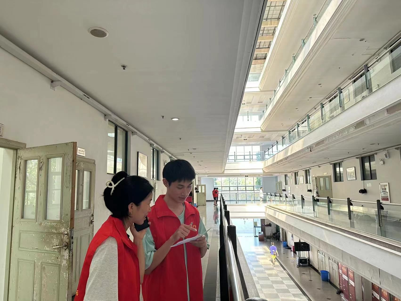 “秩序”与“关怀”同步,构建温馨后勤保障。清晨七点,本院志愿者整装待发齐聚文泰楼,由带队张凡稷老师分考场分教学楼进行志愿者分组、考场踩点等安排,并针对线上电话沟通的注意事项和入寝叫醒行动的秩序步骤向志愿者们做出详细培训,确保每一个细节都万无一失。