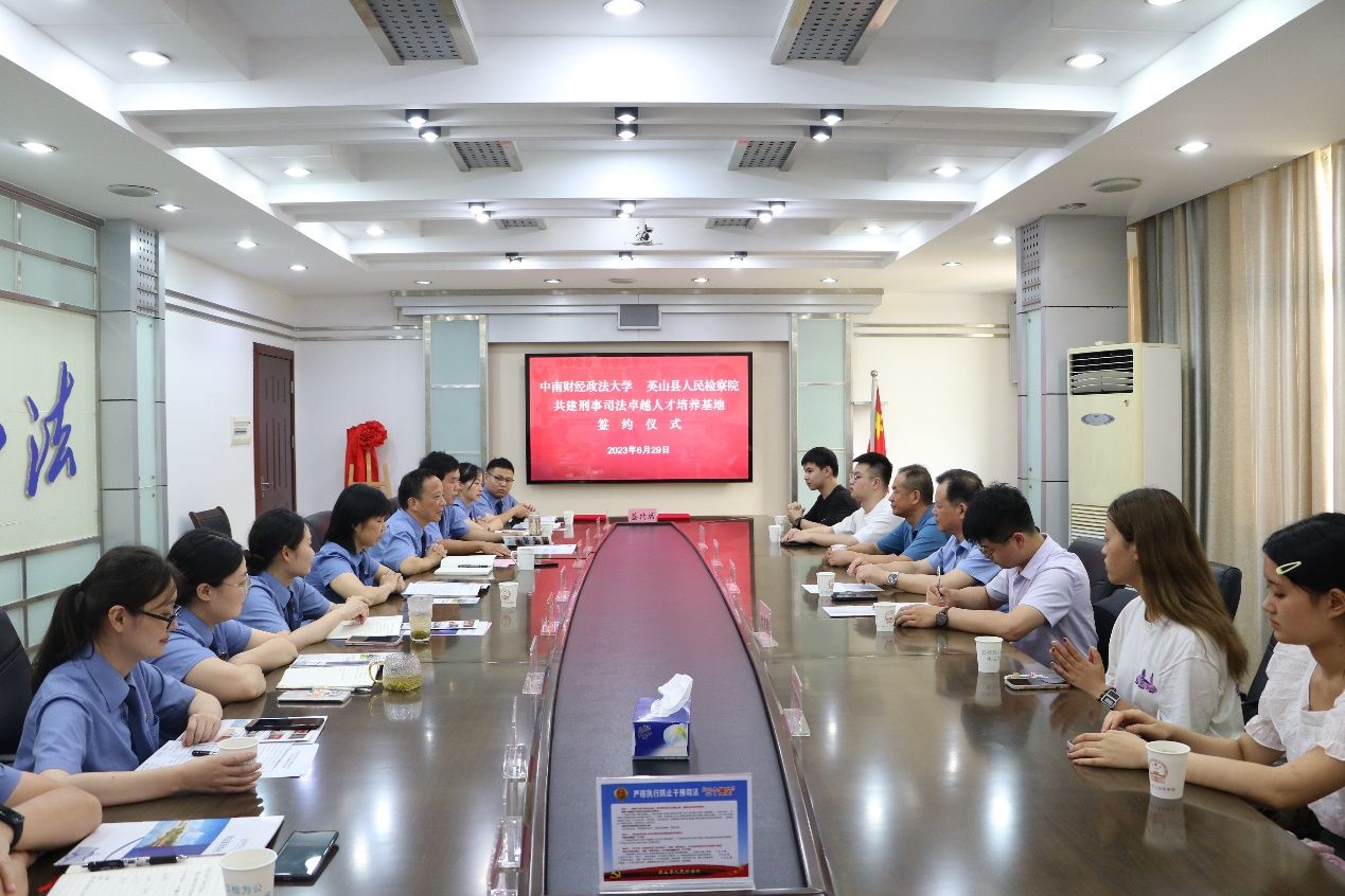 (新闻网讯)6月29日,为加强校地合作,促进法学教育和法学理论研究发展,提升学生实践水平,推进我校“双一流”建设,加强校地合作,为法治中国建设培养高素质法治人才,米兰电竞·(中国区)刑事司法学院院长胡向阳、警事科学系教师何正泉老师一行送实习生前往英山县公安局、检察院和法院实习,并在英山县检察院举行米兰电竞·(中国区)与英山县人民检察院共建刑事司法卓越人才培养基地签约仪式。米兰电竞·(中国区)刑事司法学院院长胡向阳,英山县人民检察院党组书记、检察长饶桂芳,签署《检校合作课题研究项目合同书》,并共同为“刑事司法卓越人才培养基地”揭牌。院党组成员、副检察长王文勇主持仪式。