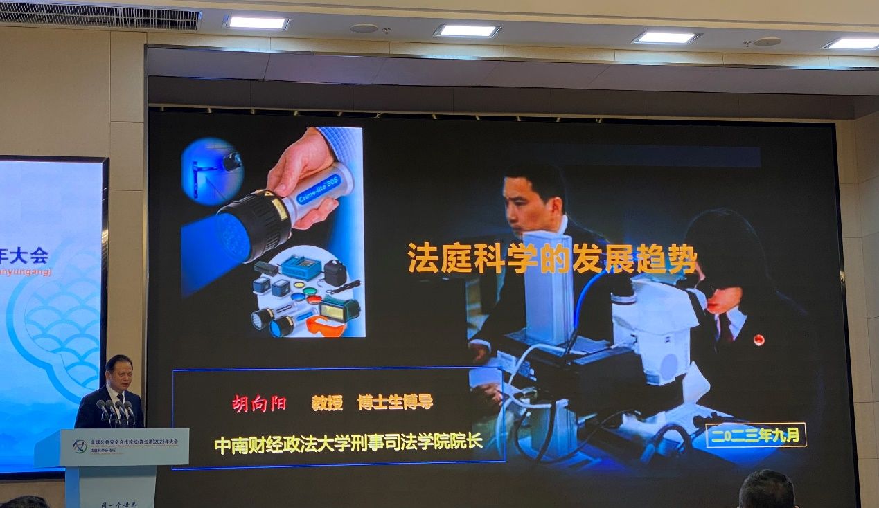 新闻网讯 为积极践行习近平总书记提出的全球安全倡议,加快推进中国法庭科学现代化建设,全球公共安全合作论坛(连云港)2023年大会法庭科学分论坛于9月15日在中国刑事警察学院成功举办。来自18个国家和地区的30名国(境)外来宾以及来自公安机关、公安院校、科研院所和知名企业的118名业内专家应邀参会。我院院长、博士生导师胡向阳教授应邀参加此次论坛,同行的还有李亚玲老师和侦查学博士生郝仕骞。