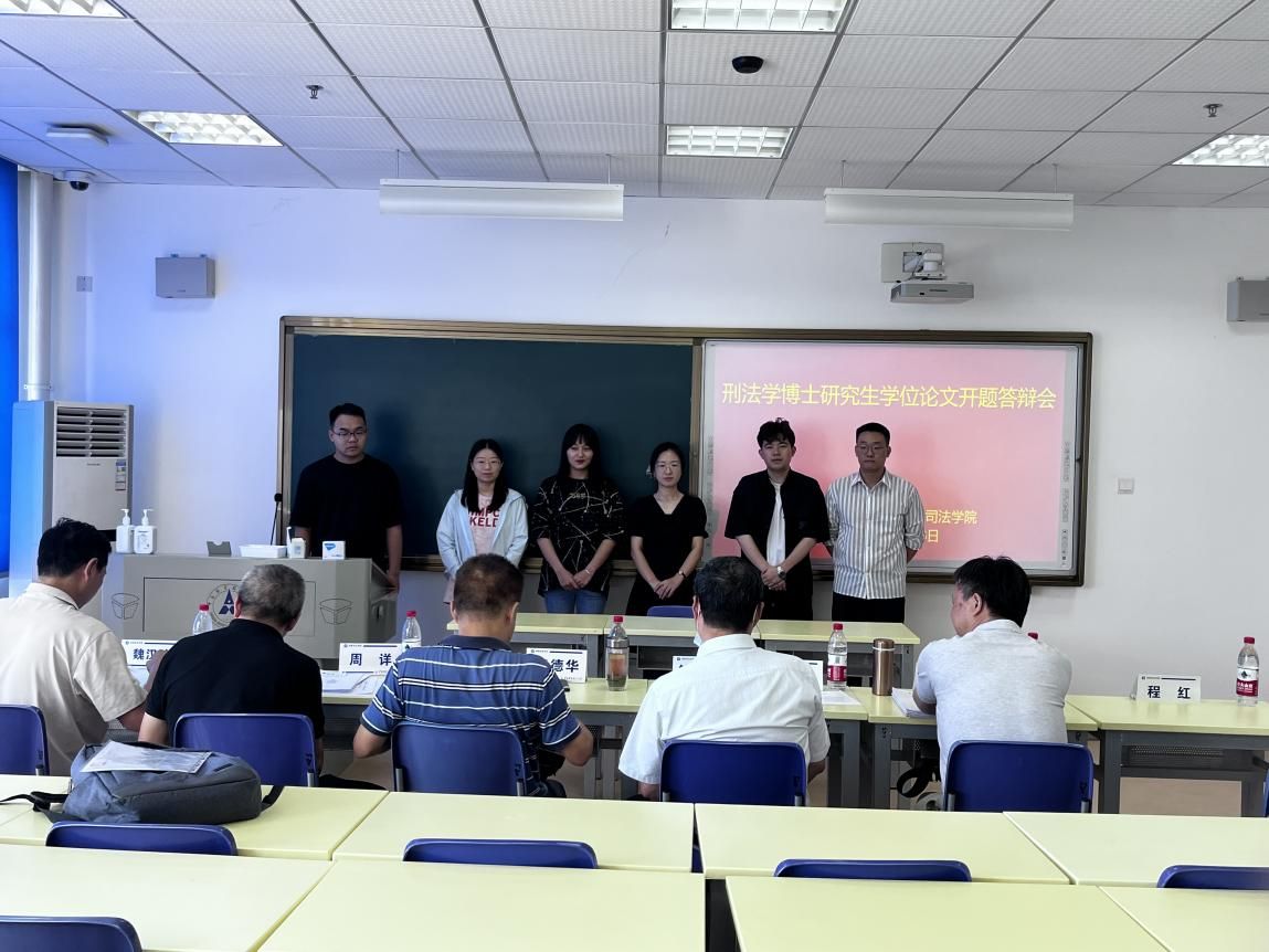 (通讯员:桑宇)2023年9月16日上午10时,我院刑法学博士生论文开题答辩会准时开始。答辩主席由我院齐文远教授担任,童德华教授、王良顺教授、周详教授、程红教授、魏汉涛教授担任答辩委员会委员。博士生成功、王之宇、李若愚、赵莹莹、王一冰、徐前参加开题答辩,答辩秘书由单碧霄、桑宇担任。