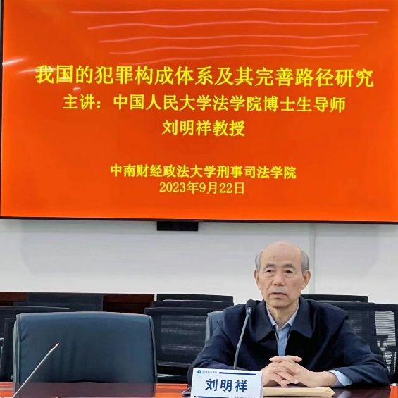 (通讯员 王一冰)2023年9月22日上午10时,“我国的犯罪构成体系及其完善路径”学术讲座在文治楼二楼会议室成功举办。此次讲座特邀中国人民大学刑事法律科学研究中心学术委员会主席、博士生导师刘明祥教授担任主讲人。