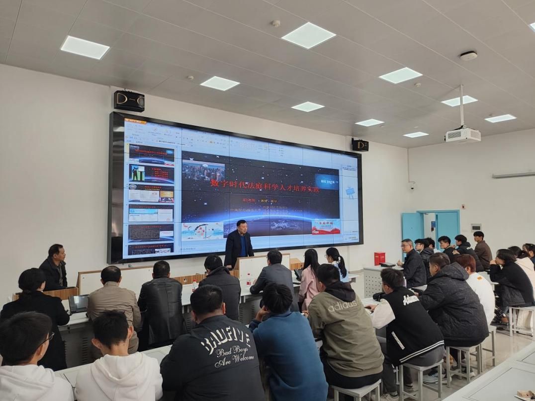 随后,刑事司法学院院长胡向阳教授做了《数字时代法庭科学人才培养实践》的专题讲座,他从五个方面对我院法庭科学专业的建设情况进行了系统的梳理与全面的介绍。他说我院高度重视法庭科学专业建设工作,旨在为同学们提供更优质的教学资源与更好的学习成长环境,并希望同学们能够充分利用学校与学院创造的优良条件,在法庭科学领域刻苦钻研,勤奋学习,有所作为。