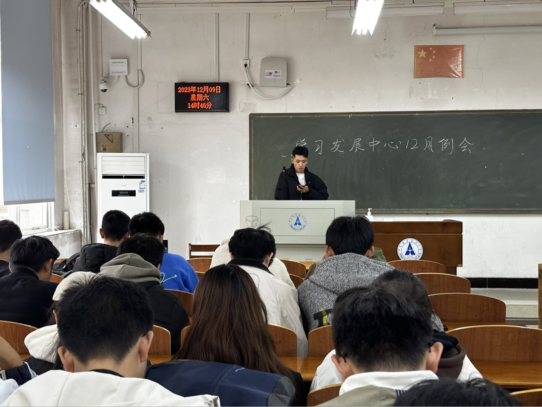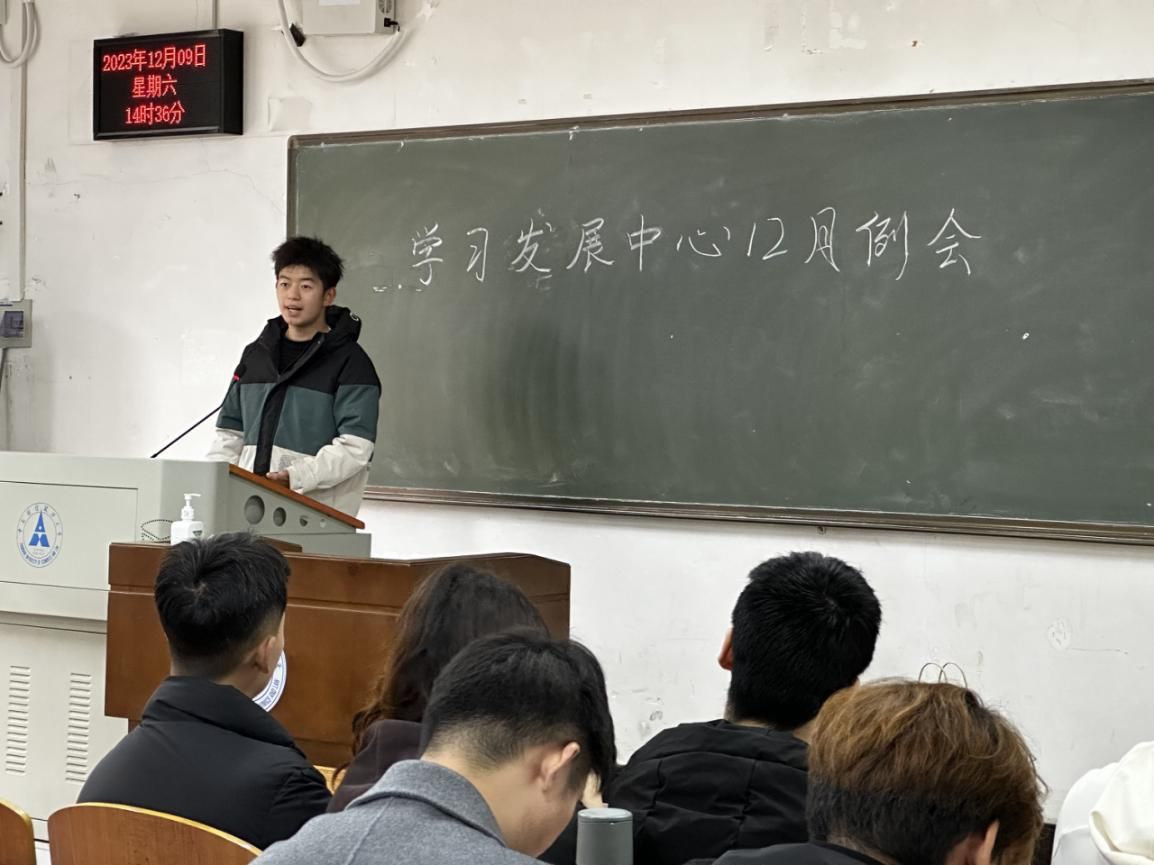 例会共分为三个环节。首先,学习发展中心各部门负责人分别上台汇报了本部门上个月的工作情况。其次,吴开创、廖睿欣分别对学习发展中心活动筹办工作方式和朋辈导师方案工作进行了讲解和指导。最后,学习发展中心各部门各自召开了内部会议。