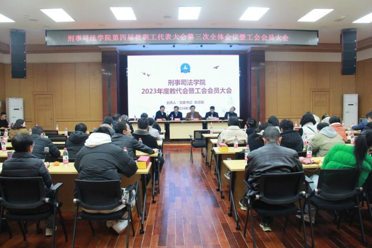 新闻网讯(通讯员 柯希鹏)1月11日下午,刑事司法学院2023年度全体教职工大会暨工会会员大会在文潭楼四楼报告厅举行。会议由刑事司法学院党委书记张志刚主持,学院全体教职工参加了会议。