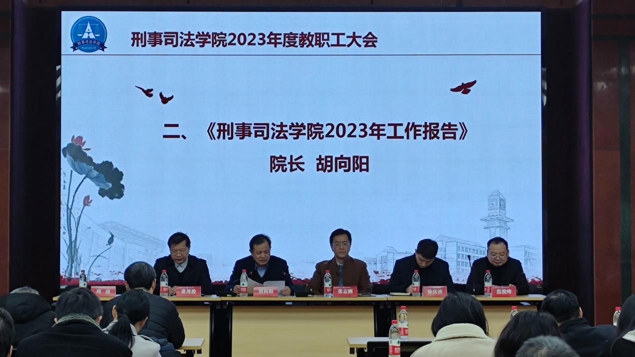胡向阳院长作《刑事司法学院2023年工作报告》和《刑事司法学院2023年财务工作报告》