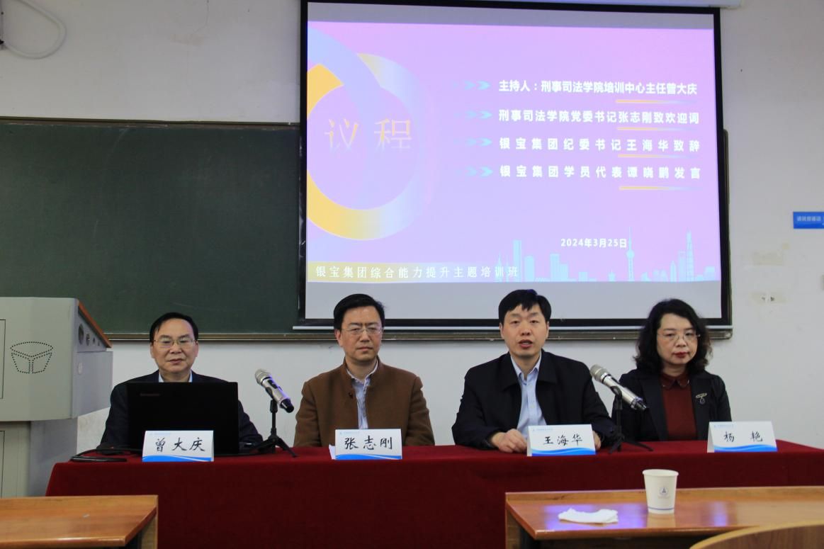 新闻网讯(通讯员 郭宸祎 周乐恒)阳春三月,江南草长。3月25日上午,2024年银宝集团综合能力提升主题培训班开班仪式在文澜楼408教室举行。米兰电竞·(中国区)刑事司法学院党委书记张志刚,银宝集团党委委员、纪委书记王海华,银宝集团党委委员、总会计师杨艳出席本次仪式。本次开班典礼由刑事司法学院培训中心主任、曾大庆副教授主持。