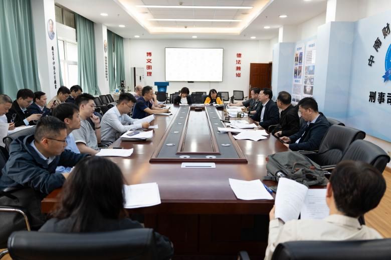 (通讯员 柯希鹏 摄影 张承业)4月18日16时,刑事司法学院本科教育教学审核评估工作推进会在文治楼二楼会议室顺利召开。刑事司法学院院长胡向阳、党委书记张志刚、副院长董邦俊,党委委员周凌出席会议,刑法学系、警事科学系、法庭科学系以及学院各职能科室负责人与工作人员参加了本次会议。