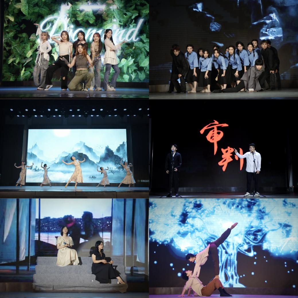随后,各类节目悉数登场,歌唱节目方面,院声乐团歌曲《无名的人》、爱幕时刻音乐剧社《A Million Dreams》给同学们带来精彩的听觉盛宴。舞蹈节目方面,校舞蹈团《逍遥》、院舞蹈团《恋》、院研究生舞蹈《望道》给晚会增添跳动的美学元素。随后,诗歌朗诵、小品等节目“你方唱罢我登场”:院朗诵团诗歌朗诵《审判》与《青春》、校广播台配音节目《狂飙》、首义话剧社小品《反诈银行》让大家领会语言类节目的魅力。