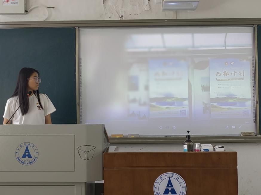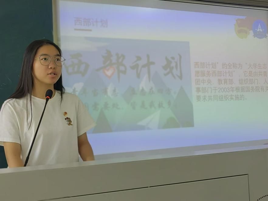 近年来,我校遴选了300余名优秀毕业生投身西部计划,奔赴新疆、西藏、甘肃、四川等省的民间基层,用青春力量奏响“到西部去,到基层去,到祖国最需要的地方去”的青春赞歌。李羽珊向同学们介绍了木亚沙尔·阿布都许库、苏正民、孙述言和何尚健等我校西部计划杰出学生代表的优秀事迹。他们在西部支教期间,不仅在教学上取得了显著的成绩,更与当地村民建立了深厚情谊,为西部地区的教育事业做出了积极贡献。