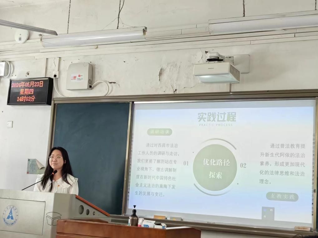班会伊始,黄希哲同学分享了她在凉山支教的社会实践经历。理论知识虽为基石,但唯有置身其中,亲身经历那些挑战与困境——从艰难的山路跋涉到孩子们渴求知识的目光,从简陋的教学条件到心灵深处的触动——方能领悟到知识应用的真谛,感受到个人行动对于促进社会进步的深远意义。通过她的亲身经历,同学们被唤醒的不仅是对社会现实的关注,更有将所学知识应用于实践,服务于社会的热情和决心。