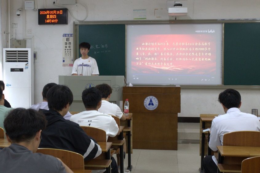 活动第一项,侦查2201班团支书向同学们介绍了“大学生志愿服务西部计划”的历史发展脉络与注意事项。在讲解中,同学们对“西部计划”的具体内容与发展背景有了更加直观的了解,对报名流程与条件有了更加清晰的认识。