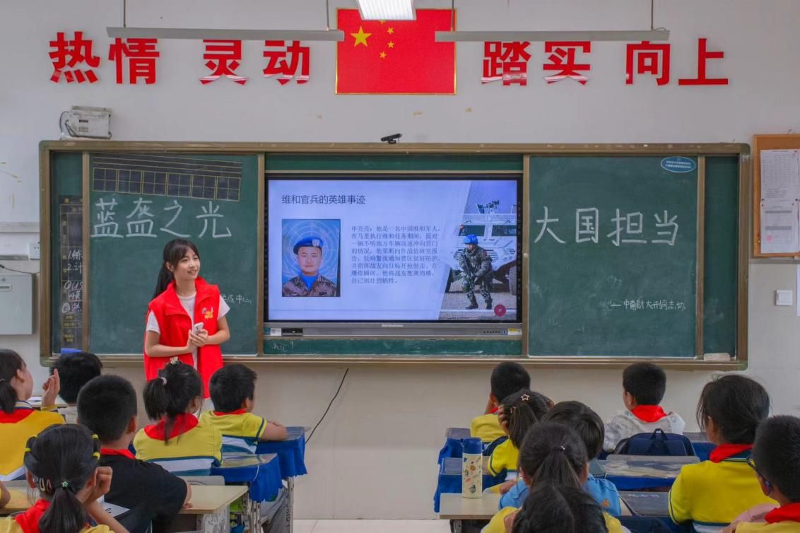 新闻网讯(学生通讯员 蔡婧瑜)近日,一部描绘联合国维和部队在执行任务中勇敢事迹的电影《维和防暴队》在全球范围内上映。这部电影以真实的维和行动为背景,展现了维和官兵在维护世界和平中所承担的风险与牺牲。为加深同学们对维和部队的了解,助力国际和平事业,5月16日,刑事司法学院志愿者协会于光谷五小开展了一场别开生面的维和主题授课活动。