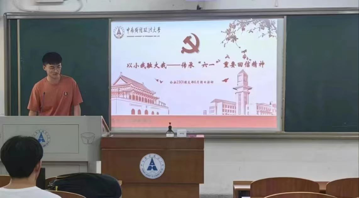 新闻网讯(学生通讯员 岳蕾静 李博宇) 在“六一”国际儿童节即将到来之际,中共中央总书记、国家主席、中央军委主席习近平在5月30日给四川省南充市嘉陵区之江小学的学生们回信,对他们予以亲切问候,并祝他们和全国的少年儿童节日快乐。为深入学习“六一”重要回信精神,刑事司法学院公安2301团支部于6月12日晚在文澜204教室开展了“以小我融大我”的主题团日活动。