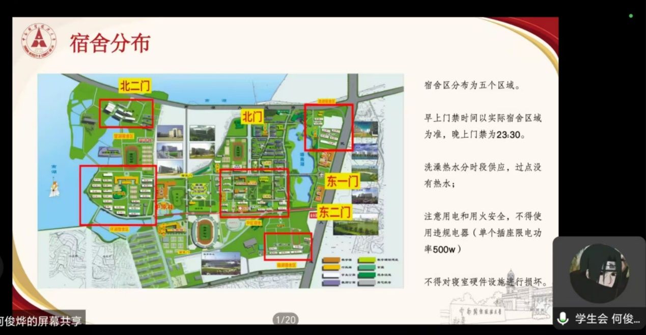接下来,由刑事司法学院团委学生干部进行团学生活展示。院团委学生干部郭宸祎、朱彬彬、黄颀分别向大家介绍了刑事司法学院团委、刑事司法学院学生会、刑事司法学院志愿者协会。团委的兢兢业业、学生会的踏实勤恳、志愿者协会的热心助人深深打动了线上所有同学。三位学生干部在最后鼓励2024级新生踊跃参与团学组织,在中南大的广阔舞台上不断锻炼本领、提升自我、发光发热。