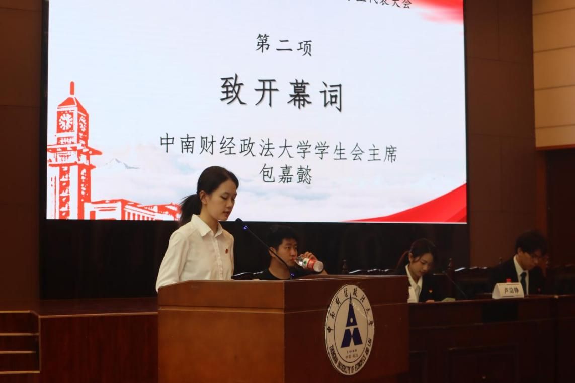 第二项,校学生会主席团成员包嘉懿致开幕词。包嘉懿希望各位代表以此次大会为起点,继续发扬“合如烈焰,散若星辰”的刑司精神,在“三全育人”工作格局和“大思政”体系中发挥作用,为高质量推进学校“双一流”建设贡献刑司力量!