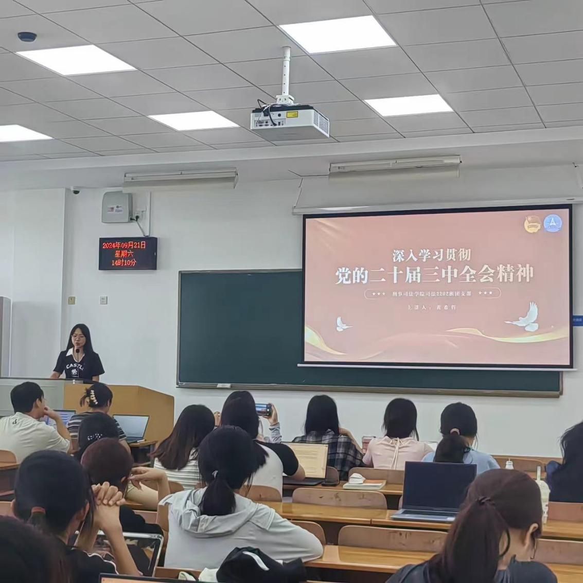 新闻网讯(学生通讯员 余越)奋进强国路,阔步新征程。为学习贯彻党的二十届三中全会精神,9月21日,刑事司法学院司法2202班团支部积极响应党的号召,开展了“深化改革启新程,青春奋进谱华章”主题团课活动。此次团课旨在引导广大团员青年深入学习领会全会精神,深刻领会和把握进一步全面深化改革的主题、重大原则、重大举措、根本保证,将党的最新理论成果转化为实际行动的指南,激励同学们在新时代的征程上勇担使命,砥砺前行。