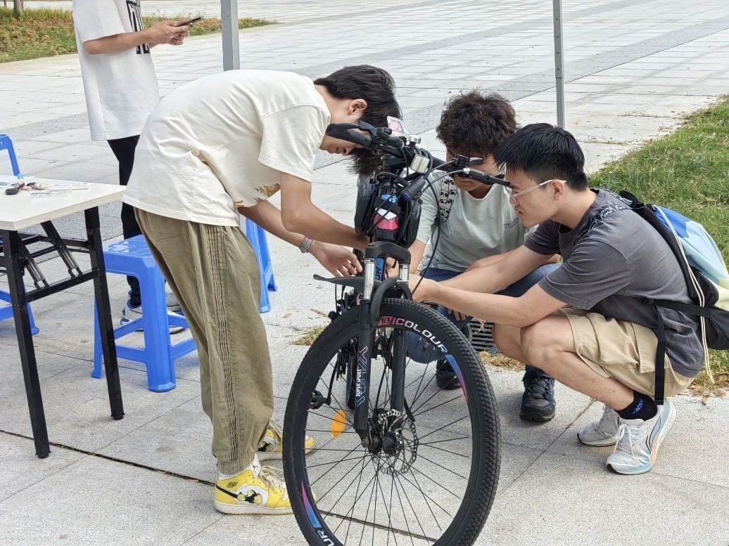 活动招募有一定自行车维修经验的志愿者,邀请维修师傅进行培训后,统计维修工具,在活动场地设置明显的标识牌开展维修活动。活动安排专门的志愿者接待前来修车的师生,进行登记,对自行车进行初步检查,判断故障类型,进行当场维修,在维修过程中,志愿者向车主讲解自行车的日常保养知识,提高车主对自行车的维修保养意识。活动结束,大家一起分享活动经验和感受。不少志愿者表示,这样的活动很有意义,在帮助别人的过程中收获了快乐,感受到充实。