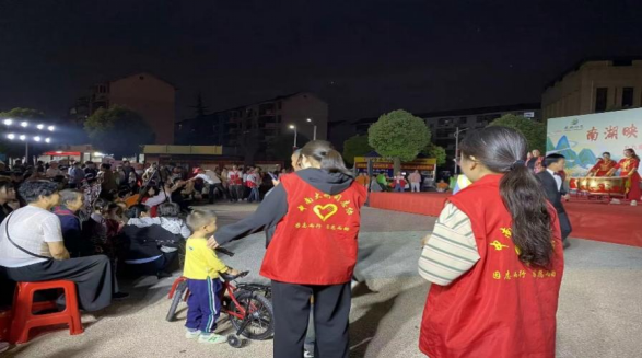 18时左右,志愿者们投入到引导观众入场的工作中,他们热情引导观众就座,主动帮助行动不便的老年人。晚会开始后,志愿者各司其职。一部分配合社区人员做场务,一部分维持现场秩序。晚会结束后,志愿者们迅速进行会场清理,齐心协力搬运桌椅,以高度热情和强烈责任心为活动画上完美句号。他们的付出如金秋暖阳,让这场晚会更加熠熠生辉。