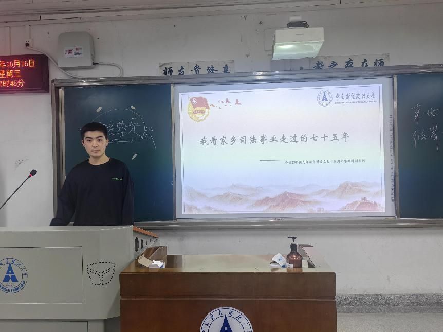 活动第三项,公安2301红旗团支部充分结合自身特色,特别开展了“我看家乡司法事业走过的七十五周年”专题系列活动。本期活动由团支部成员何阳同学进行分享。何阳同学同大家交流了他的家乡宁夏的司法事业在新中国成立以来的蓬勃发展以及如何通过高质量党建引领宁夏司法事业的高质量发展。通过他的介绍,大家更深刻地领悟到新中国成立75年来司法事业的发展与巨变。
