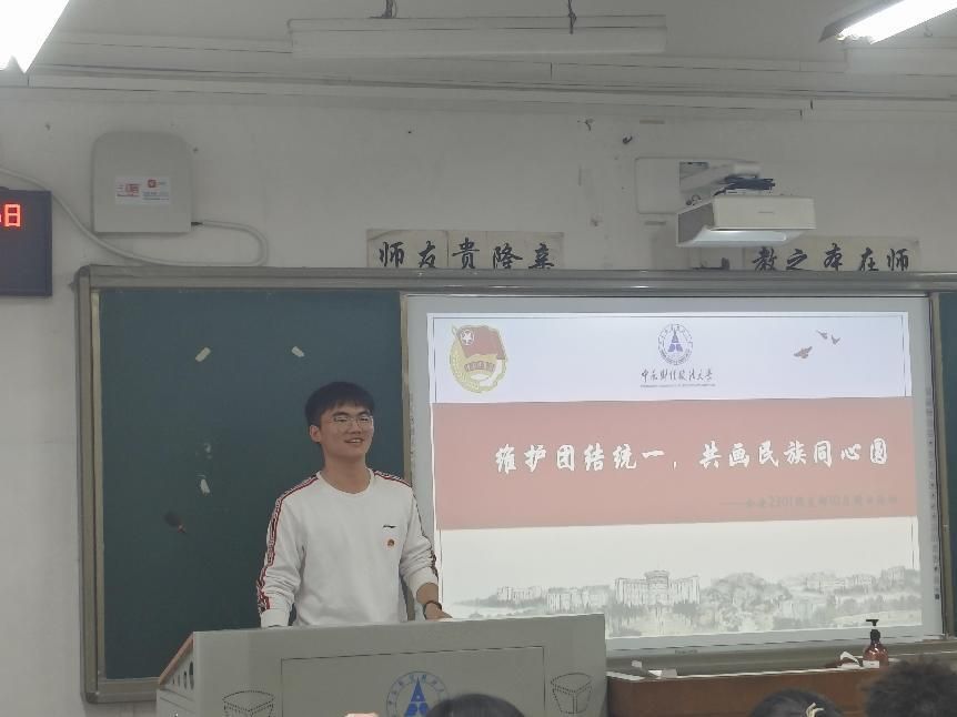新闻网讯(学生通讯员 李博宇)10月16日,公安2301团支部组织开展了“维护团结统一,共画民族同心圆”的主题团日活动。活动第一项,公安2301团支部全体成员在团支书李博宇的带领下,共唱中国共产主义青年团团歌。随后,团支书为大家介绍今天活动相关的主题与主要背景。