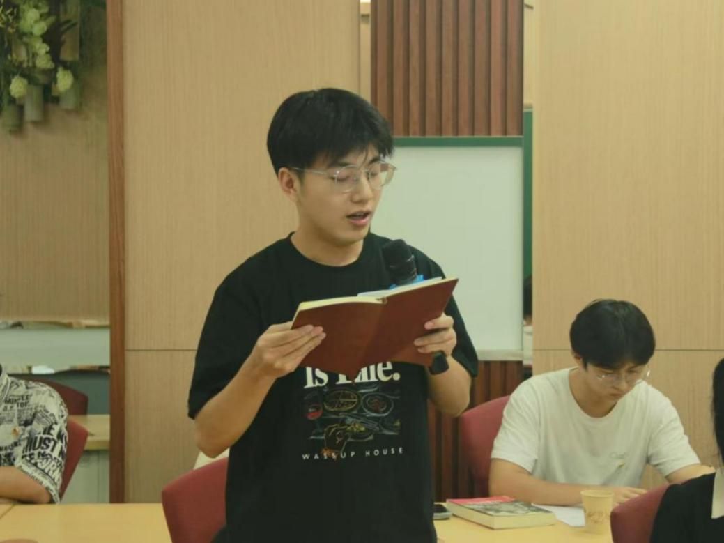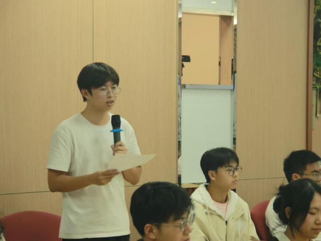 在讨论分享环节,同学们踊跃发言,氛围热烈。院团委组织部部长黄家祺同学,院志愿者协会主席团成员吕长骏同学和青年培育办公室负责人成锦豪同学分别分享了自己的读书的感悟。