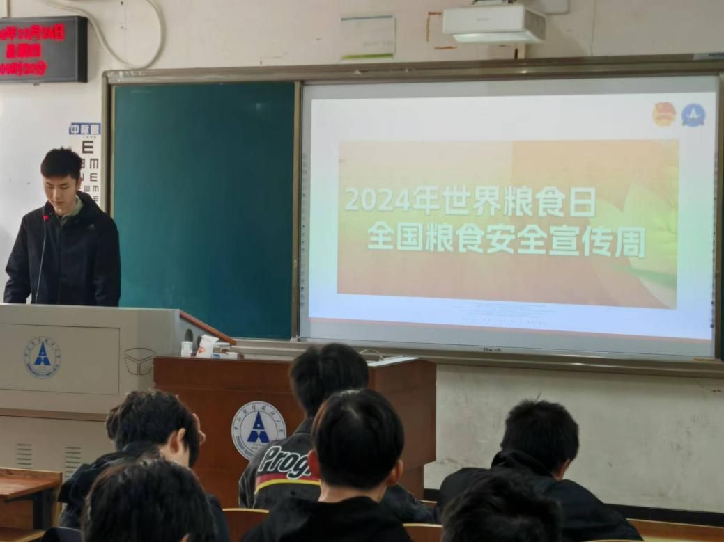 活动第三项,团支书为同学们介绍了世界粮食日与全国粮食安全宣传周的来历、发展过程以及一系列粮食保护措施。通过观看相关视频,同学们对什么是粮食安全、如何保障粮食安全等方面有了更深的体会。