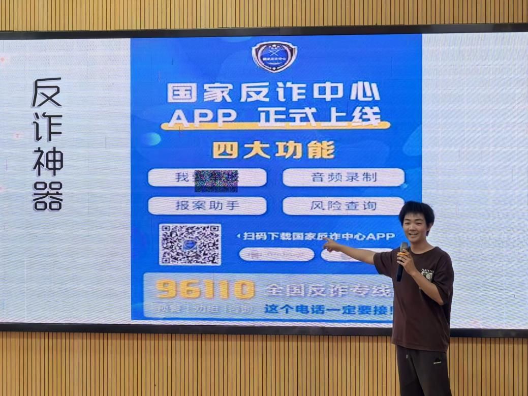 电信网络诈骗的手段繁多,常常使我们防不胜防。接下来,黄孝伟向同学们推荐了反诈神器——“国家反诈中心”app,号召大家借助官方的权威力量保护网络安全。