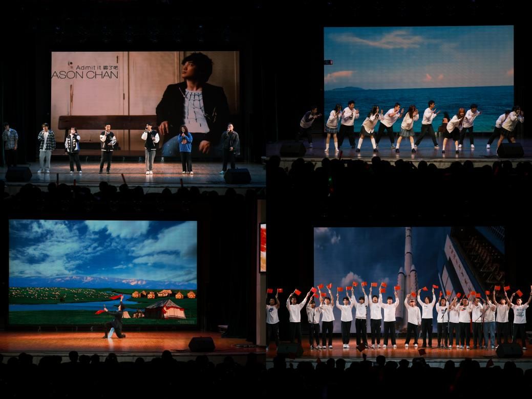 随后,浙江警察学院的交换生们带来了慷慨激昂的警歌《人民公安向前进》,借此礼赞和平年代为我们负重前行、默默奉献的人们。在铿锵有力的节奏下,在场观众无不心潮澎湃,为之动容。合唱《倔强》用昂扬的旋律激励同学们以倔强不屈的态度直面生活中的挑战与困难。话剧《天之骄子的双面人生》在诙谐幽默的同时引人深思。周杰伦歌曲串烧囊括了歌手周杰伦的许多经典作品,令人沉醉不已。飞扬的发丝、耀眼的灯光、飘逸的舞姿,舞蹈《Meow》和《我最红》在动感的节拍与音符中展现舞动的青春活力,将晚会气氛推向最顶峰。节目的最后,杨宬菀、闻鋆涛、黄炯量三位同学以一首《我和我的祖国》唱响对祖国的赞歌。