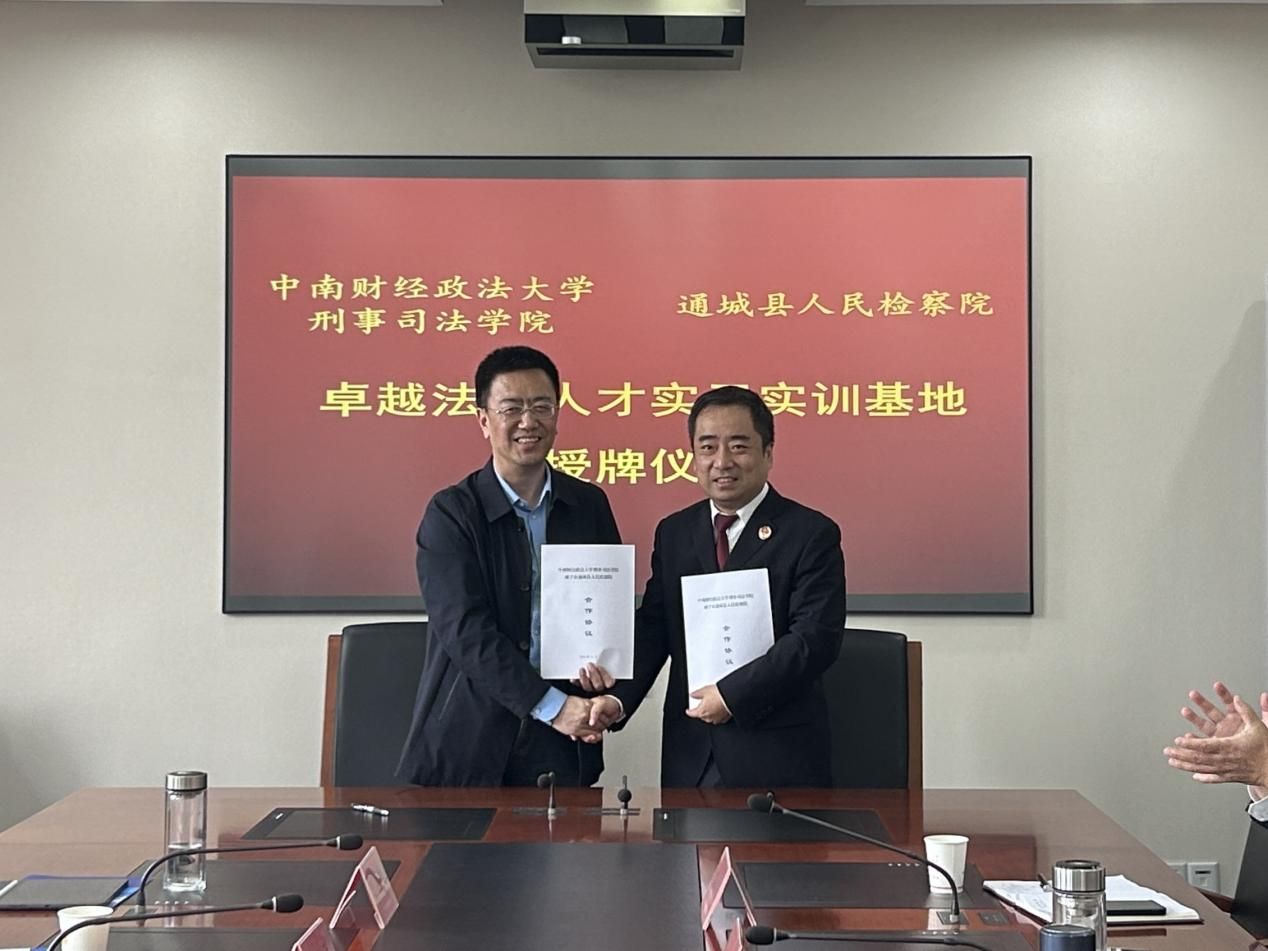 上午10时,签约揭牌仪式开始,张志刚与通城县人民检察院党组书记、检察长阮建签署检院合作协议,并为“卓越法治人才实习实训培养基地”揭牌。