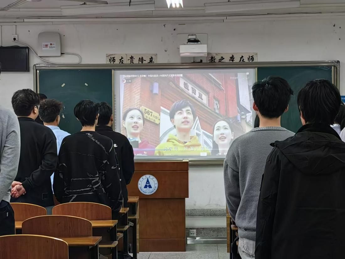 活动第一项,公安2301团支部全体成员在团支书李博宇的带领下,共唱中国共产主义青年团团歌。随后,团支书为大家介绍今天活动相关的主题与主要背景。
