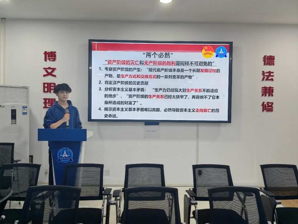 在自由交流环节,同学们积极发言,充分展示了各自的学习成果。团委组织部副部长潘锋同学和团委宣传部副部长王文豪同学分别分享了自己学习《共产党宣言》的心得感悟。