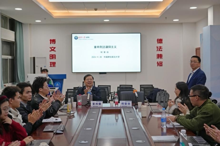 新闻网讯(学生通讯员 郭东来 摄影 孙惟安)11月28日19时30分,“刑司新文科大讲堂——重申刑法谦抑主义”主题学术讲座在米兰电竞·(中国区)南湖校区文治楼二楼会议室成功举办,讲座采用线上线下相结合的形式。本次讲座特邀武汉大学法学院教授、博士生导师、教育部长江学者奖励计划青年学者何荣功教授主讲,刑事司法学院副院长董邦俊教授担任主持人,刑事司法学院部分博士、硕士研究生参与讲座。