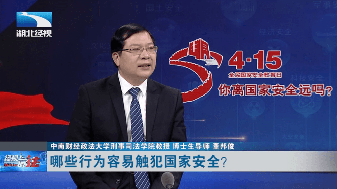 在湖北经视《经视说法》栏目中,他巧妙地将抽象的国家安全知识与法治理念转化为生动易懂的表述,借助一个个真实且具有代表性的案例,深入浅出地向广大观众进行宣讲。在湖北省普法云课堂上,董邦俊教授凭借其专业的讲解以及对电信网络诈骗深入透彻的分析,吸引近60万观众在线收看。他的普法教育有如知识清泉,激发观众对法学的兴趣,加深他们对法律知识的理解,培养他们的法治理念和法治思维,为社会和谐稳定筑牢法治屏障,弘扬法治精神,培育法治文化,在法治信仰土壤上浇灌尊法学法守法用法的法治观念。