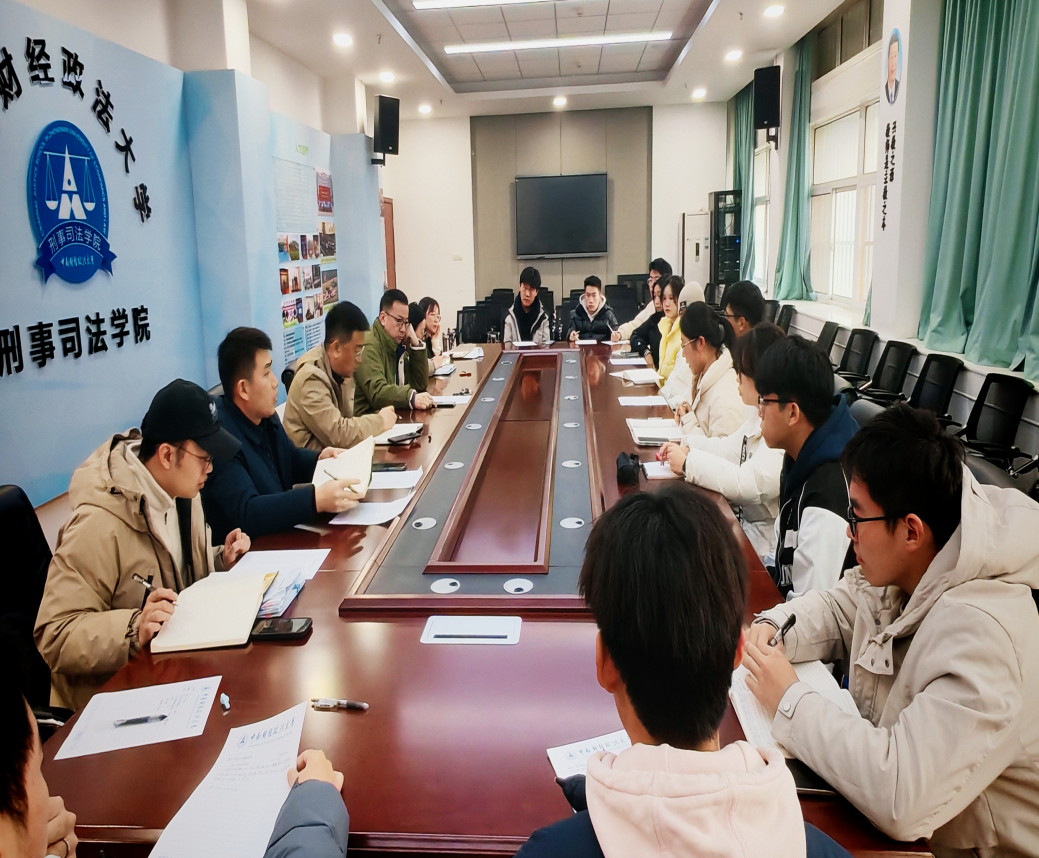 新闻网讯(学生通讯员 胡炜韬 蒋承洋 陈思奇 赵金金 摄影 冉庭恺)“想同学之所想,急同学之所急”,为切实解决2024级本科生在学习生活中遇到的问题,搭建学院师生沟通桥梁,12月19日中午,刑事司法学院在文治楼二楼会议室召开了2024级学生座谈会。刑事司法学院党委书记张志刚、副院长周凌、党委副书记徐庆祥、学生工作办公室主任陆薇、院分团委书记张凡稷、院教学办梅功雪以及2024级本科生代表参加座谈会。
