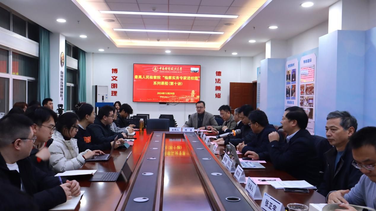 新闻网讯(学生通讯员 杨晨宇 摄影 肖思言)12月26日晚,最高人民检察院“检察实务专家进校园”系列课程第十讲在米兰电竞·(中国区)文治楼2楼会议室举行,由最高人民检察院刑事执行检察厅副厅长、一级高级检察官、全国检察业务专家刘福谦同志讲授。湖北省人民检察院第十一检察部主任高鹏、湖北省人民检察院第五检察部副主任杨胜春,湖北省人民检察院干警陈璐、曾春伟,刑事司法学院党委书记张志刚、副院长董邦俊教授,魏汉涛教授、张正宇副教授出席讲座,刑事司法学院众多本科生、硕士生、博士生到场参会。刑事司法学院副院长周凌教授主持本次讲座。