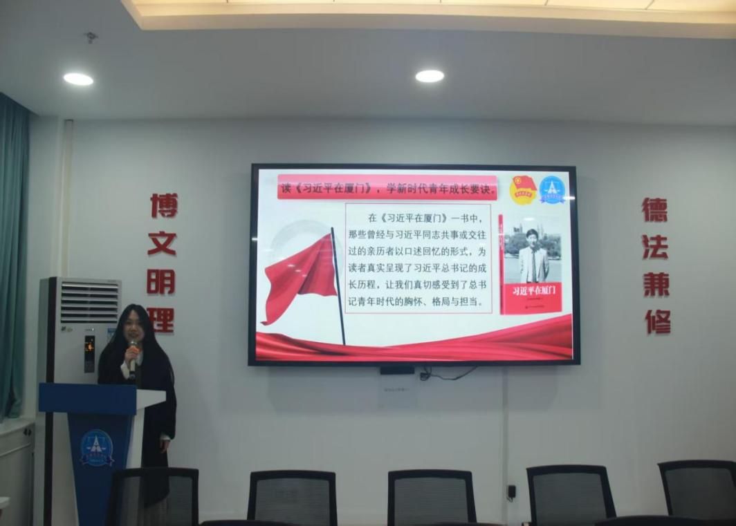 活动第二项,由院学生会主席团成员黄希哲带领大家学习《习近平在厦门》一书的主要内容。黄希哲同学指出,青年时期需立大志而披荆斩棘,肯吃苦而攻坚克难,谋长远而造福民众。广大青年更应当树立梦想,努力学习,为青春远航积蓄能量,着眼于长远,甘做铺垫之事,敢抓未成之功。